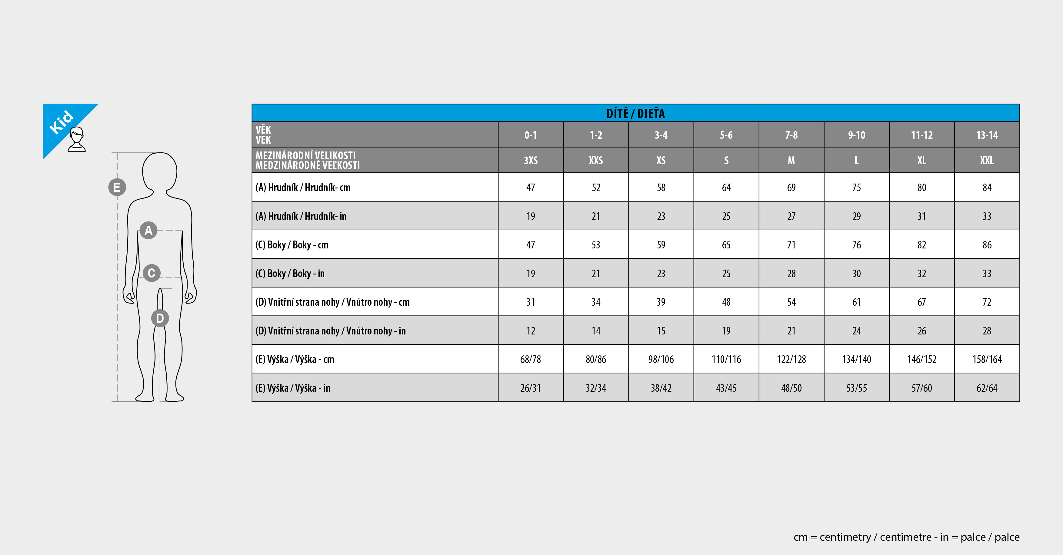 Tabulka velikostí